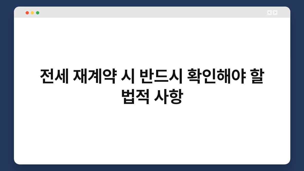 전세 재계약, 고민이 많으시죠? 재계약 시에는 단순히 집주인과의 합의뿐만 아니라 법적 사항도 반드시 체크해야 합니다. 법적 요건을 간과하면 나중에 큰 불이익을 당할 수 있어요. 이 글에서는 전세 재계약 시 꼭 확인해야 할 법적 사항들을 살펴보겠습니다. 중요한 정보들을 함께 알아보며, 안전하고...