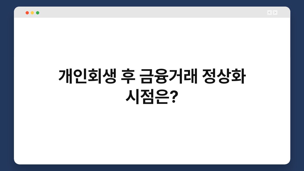 금융 거래의 정상화는 많은 분들에게 중요한 문제입니다. 개인회생 절차를 마친 후, 언제부터 다시 금융 거래를 할 수 있을지 궁금해 하시는 분들이 많습니다. 개인회생이 끝난 후에도 금융 거래에 대한 불안감이 남아 있을 수 있죠. 하지만 이 글을 통해 개인회생 후 금융...
