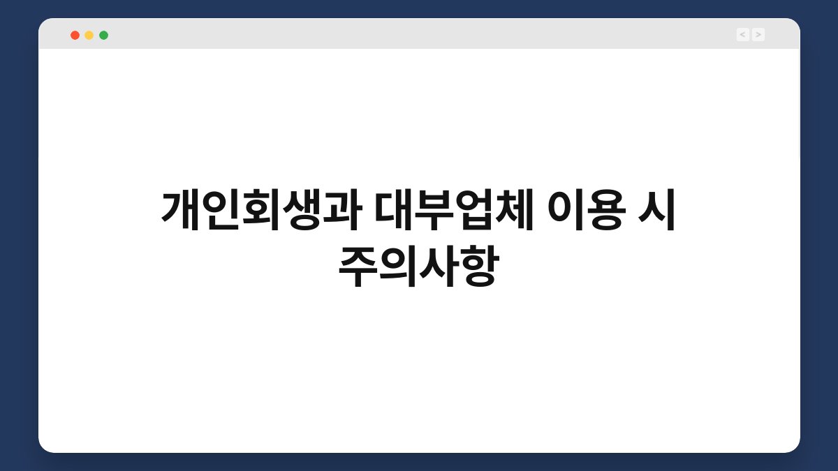 재정적인 어려움은 누구에게나 찾아올 수 있는 문제입니다. 특히, 개인회생과 대부업체를 고려할 때는 더욱 신중해야 합니다. 이러한 선택이 여러분의 재정 상황에 어떤 영향을 미칠지 고민해 보셨나요? 이 글에서는 개인회생과 대부업체 이용 시 주의해야 할 사항들을 알아보겠습니다. 올바른 정보를 바탕으로 현명한 결정을...