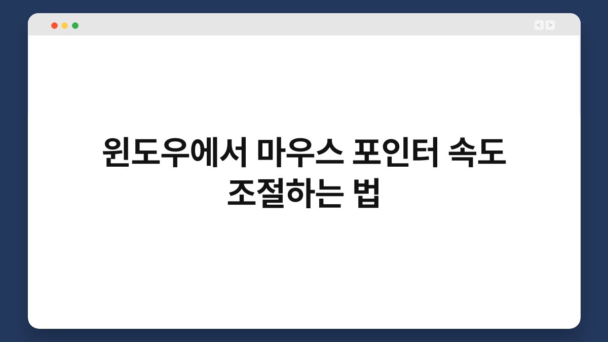 컴퓨터를 사용하다 보면 마우스 포인터의 속도가 너무 느리거나 빠르게 느껴질 때가 있습니다. 이런 상황은 작업의 효율성을 떨어뜨릴 수 있죠. 하지만 걱정하지 마세요! 윈도우에서 마우스 포인터 속도를 간편하게 조절할 수 있는 방법이 있습니다. 이 글에서는 마우스 포인터 속도를 조절하는 구체적인 방법과...