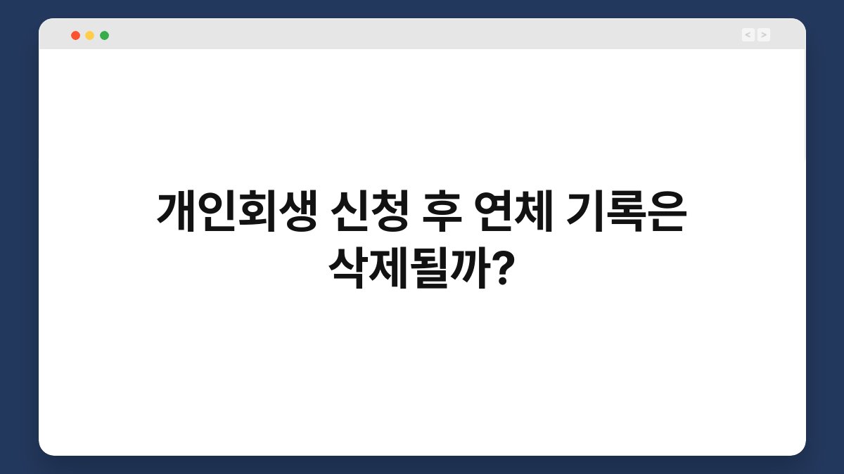 개인회생을 신청하면 많은 분들이 궁금해하는 점이 바로 연체 기록의 삭제 여부입니다. 과거의 연체 기록이 개인회생 신청 후 어떻게 처리되는지에 대한 정보는 매우 중요합니다. 이 글에서는 개인회생 신청 후 연체 기록이 삭제될 수 있는지, 그리고 그 과정에 대해 자세히 알아보겠습니다. 연체...