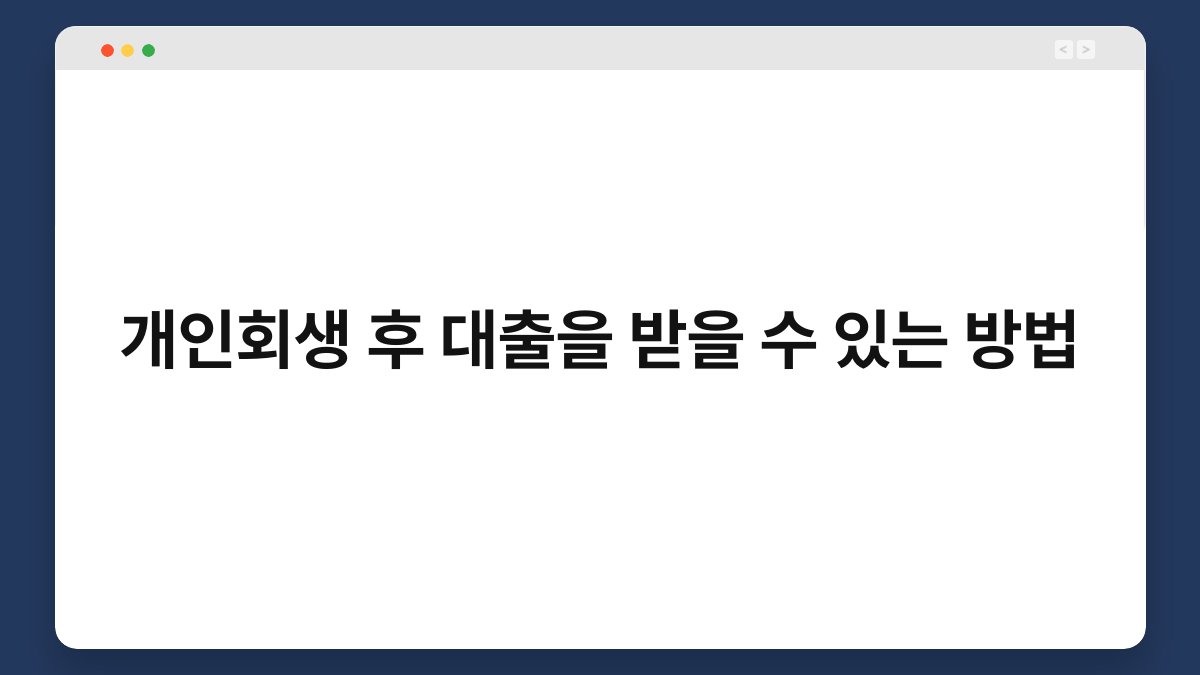 개인회생을 경험한 후, 대출 금리에 대한 고민이 많으실 겁니다. 많은 분들이 개인회생 후 대출이 가능할까, 금리는 어떻게 변할까 하는 질문을 하죠. 개인회생은 재정적인 회복을 위한 중요한 과정이지만, 그 이후의 금리 변화는 여러분의 미래 재정 계획에 큰 영향을 미칠 수 있습니다....