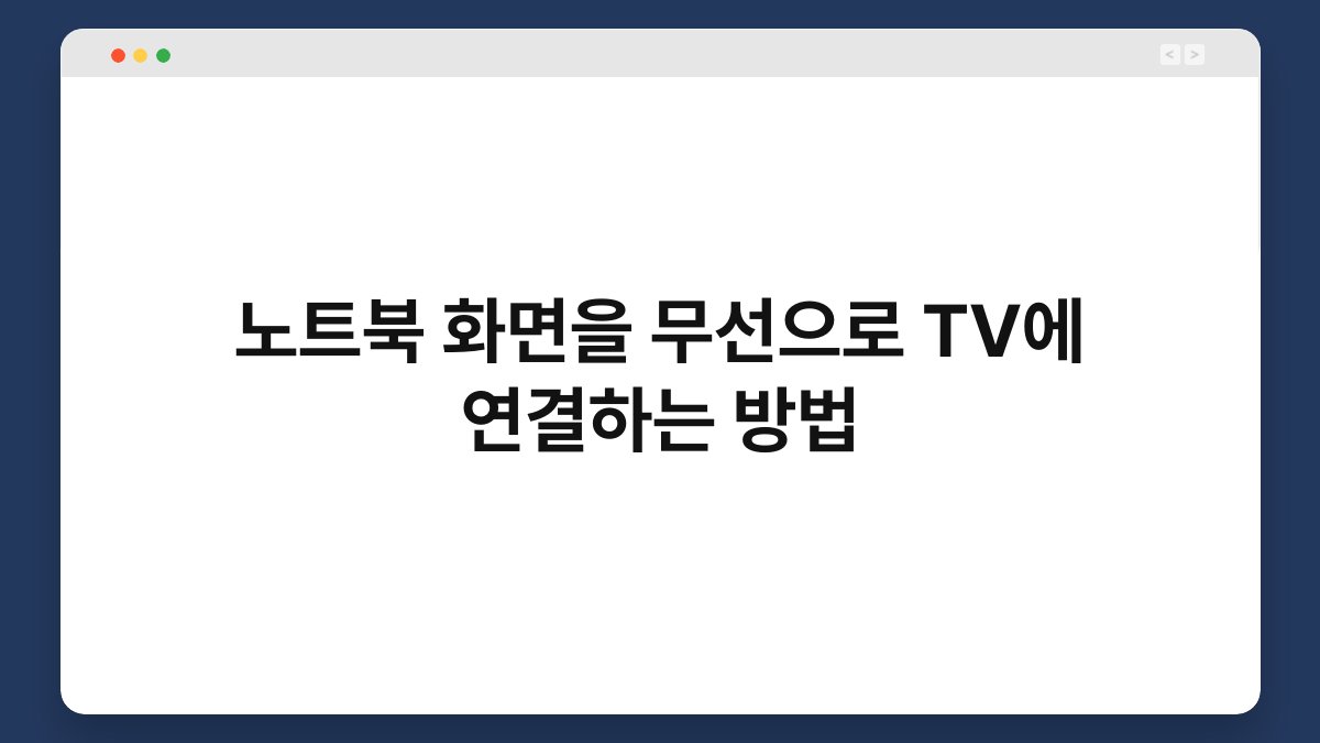 노트북과 TV를 연결하고 싶지만, 복잡한 케이블이나 설정이 귀찮으신가요? 무선으로 간편하게 연결하는 방법이 있습니다. 이 글에서는 노트북 화면을 무선으로 TV에 연결하는 다양한 방법을 소개하겠습니다. 다양한 기기와 호환되는 방법을 알아보면, 영화나 게임을 더 큰 화면에서 즐길 수 있는 기회를 놓치지 않게 될...