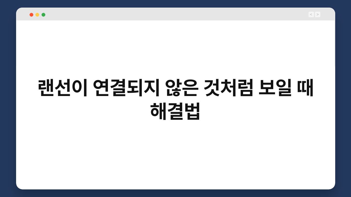 인터넷이 느려지거나 연결이 끊어지는 상황, 누구나 겪어본 적이 있을 것입니다. 특히 랜선이 연결되지 않은 것처럼 보일 때는 불안감이 커지죠. 이러한 문제는 간단한 원인으로 발생할 수 있으며, 해결 방법도 다양합니다. 이번 글에서는 랜선 연결 문제를 해결하는 방법을 알아보겠습니다. 불편한 상황을 빠르게...