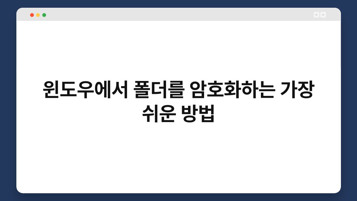 파일을 안전하게 보호하고 싶으신가요? 윈도우에서 폴더를 암호화하는 가장 쉬운 방법을 통해 소중한 데이터를 안전하게 지킬 수 있습니다. 많은 분들이 일상에서 파일 보안의 중요성을 느끼지만, 어떻게 시작해야 할지 막막할 수 있습니다. 이 글에서는 간단하고 효율적인 암호화 방법을 소개해 드리겠습니다. 끝까지 읽으시면,...