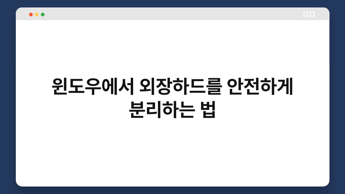 컴퓨터를 사용하다 보면 외장하드를 연결하고 데이터를 주고받는 일이 잦죠. 그런데 외장하드를 안전하게 분리하지 않으면 데이터 손실이나 손상이 발생할 수 있습니다. 그래서 이번 글에서는 윈도우에서 외장하드를 안전하게 분리하는 방법을 알아보겠습니다. 이 과정을 통해 여러분은 소중한 데이터를 보호하고, 외장하드를 더욱 안전하게 사용할...