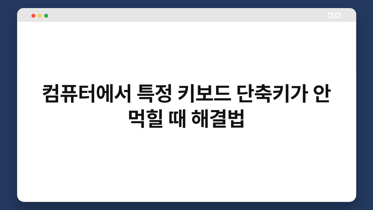 컴퓨터를 사용할 때 특정 키보드 단축키가 작동하지 않는다면 매우 불편하죠? 일상적인 작업에서 단축키는 시간을 절약해주고 효율성을 높여주는 중요한 도구입니다. 하지만 갑자기 단축키가 작동하지 않으면 당황스러울 수 있습니다. 이 글에서는 이런 문제를 해결하기 위한 다양한 방법을 소개할 예정입니다. 컴퓨터에서 특정 키보드...