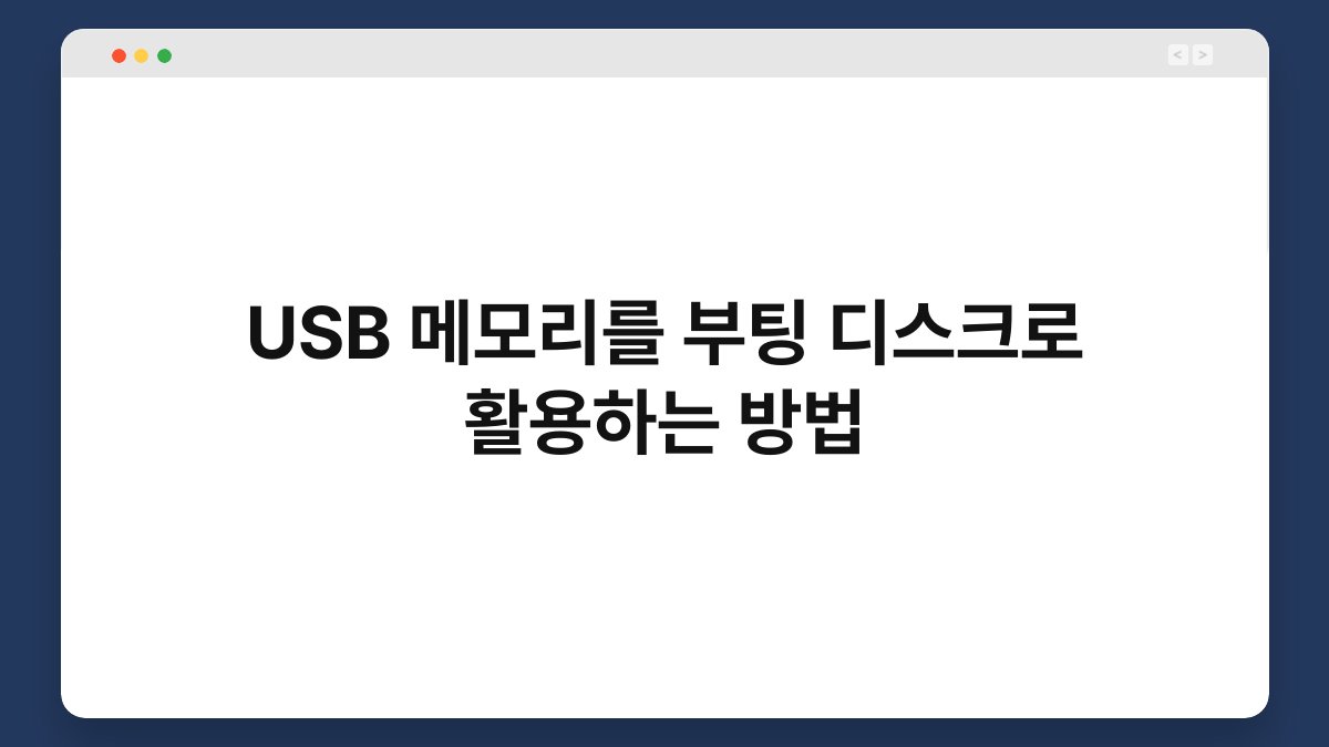 USB 메모리를 부팅 디스크로 활용하는 방법, 알고 계신가요? 많은 분들이 컴퓨터 문제로 고민할 때, USB 메모리를 사용해 부팅할 수 있다는 사실을 모르고 지나치곤 합니다. 이 글에서는 USB 메모리를 부팅 디스크로 만드는 방법과 그 유용성을 자세히 설명드릴게요. 여러분의 컴퓨터를 복구하거나 새로운...